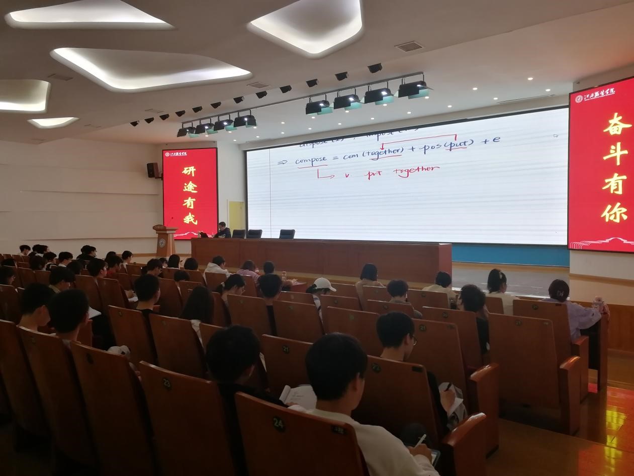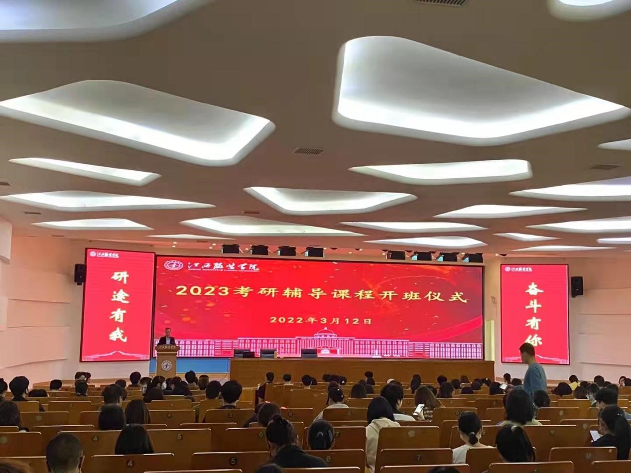 新闻中心讯(质评中心供稿) 为充分调动我校学生学习的积极性、主动性,落实本科生考研帮扶工作,助力学生备战2023硕士研究生考试,我校聘请省内外知名考研教学专家来校授课。3月12日,江西服装学院2023年考研辅导课程在思贤楼三楼报告厅正式开班,300余名本科生报名参加了考研课程帮扶辅导。