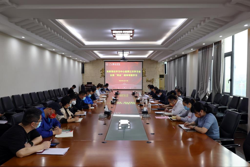 (新闻中心讯)3月17日上午,我校在行政楼二楼会议室召开党委理论学习中心组第三次学习会,专题学习2022年全国两会精神。校党委书记陈付龙主持会议并讲话,校党委委员、各学院党总支书记、各机关支部书记参加会议。