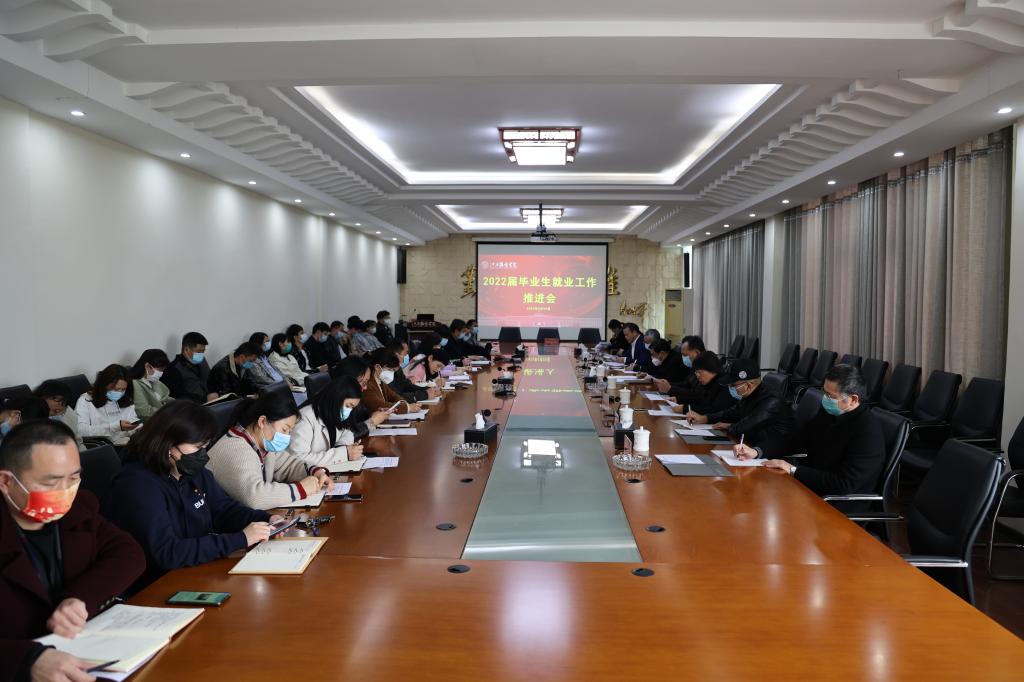 新闻中心讯3月29日下午,我校2022届毕业生就业工作推进会在行政楼二楼会议室召开。校长薛家宝与联系二级学院的校领导出席会议,各学院党政负责人、各学院就业联络员、就业办公室全体成员参加了会议。会议由党委副书记唐新强主持。