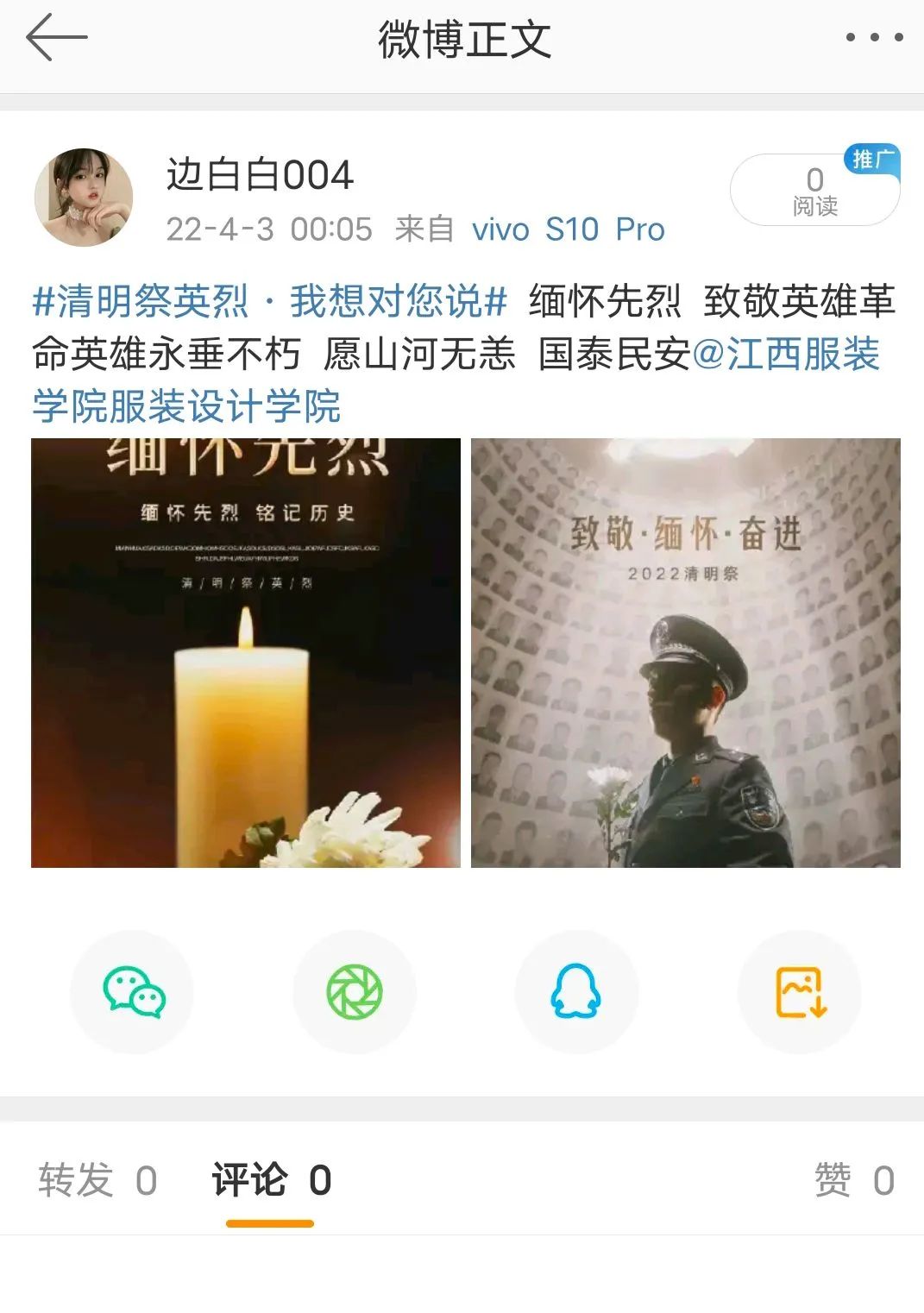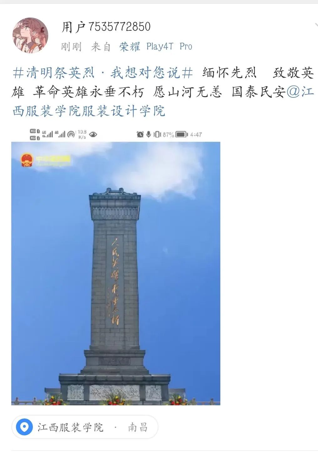 服装设计学院开展“缅怀革命先烈,传承革命精神”主题网上祭扫活动