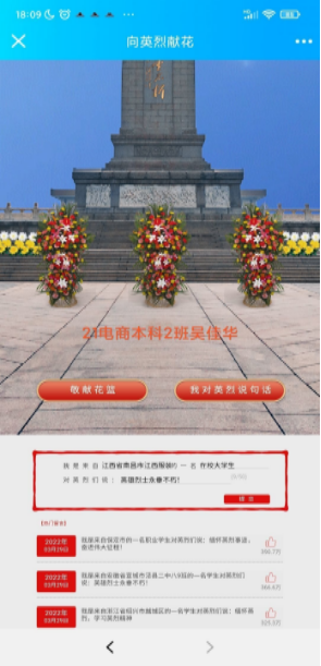 大数据学院从3月30号至4月5号开展“2022奋进”致敬英雄、缅怀先烈网上祭英烈活动,大数据学院学生社区服务中心全体同志参与到此次活动当中。