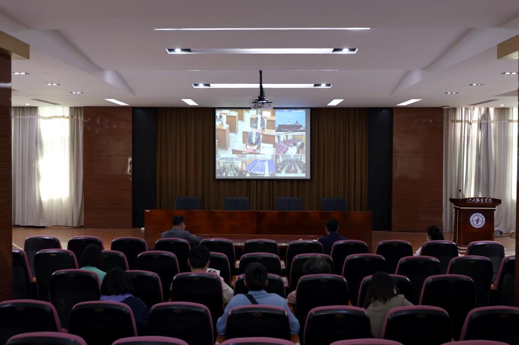 新闻中心讯(学工处供稿) 为更好的应对疫情防控期间高校心理健康工作面临的挑战,4月20日下午,江西省教育厅召开全省高校疫情防控工作心理健康教育视频调度会,我校党委副书记唐新强,宣传部长沈新建,学工处长邓良峰,副处长侯娜娜,保卫处长鲍鹏,心理中心全体教师,二级学院全体心理工作站站长在行政楼一楼报告厅参加了会议。