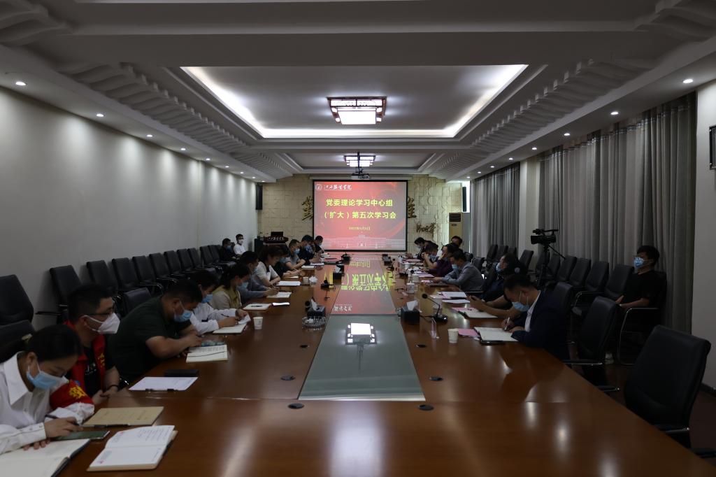 【新闻中心讯 文/龙瑞行 图/万强】5月5日,我校在行政楼二楼会议室召开党委理论学习中心组(扩大)第五次学习会。校党委书记陈付龙主持会议并讲话,校党委委员、各学院党总支书记(副)、各机关支部书记参加会议。