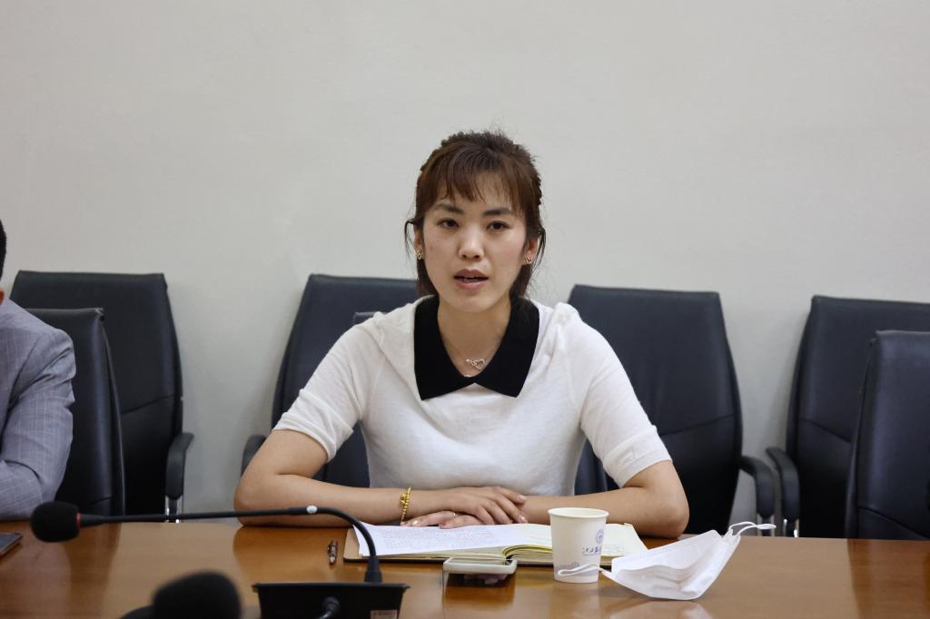 服装设计学院党总支书记蓝岚、校团委书记孟安然围绕学习内容,结合自身工作实际,谈了学习体会,表示要认真学习深刻领会精神实质,准确把握核心要义,把学习成效转化为推动学校高质量发展的强大动力,为学校申硕建设、“三步走”战略而努力奋斗。