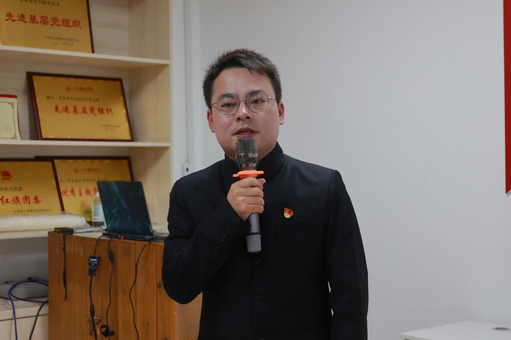 马克思主义学院党总支副书记陈洋安老师作了《誓言无声》的主题宣讲。陈洋安老师向同学们讲述了江西农民党员贺页朵的入党誓词背后的故事,它是贺页朵冒着杀头的危险保存下来的,是中国共产党现存最早写有入党誓词的文物,贺页朵识字不多,文化不高,但从这份入党宣誓书里看到贺页朵内心深处坚定的革命信念和对党的忠诚。
