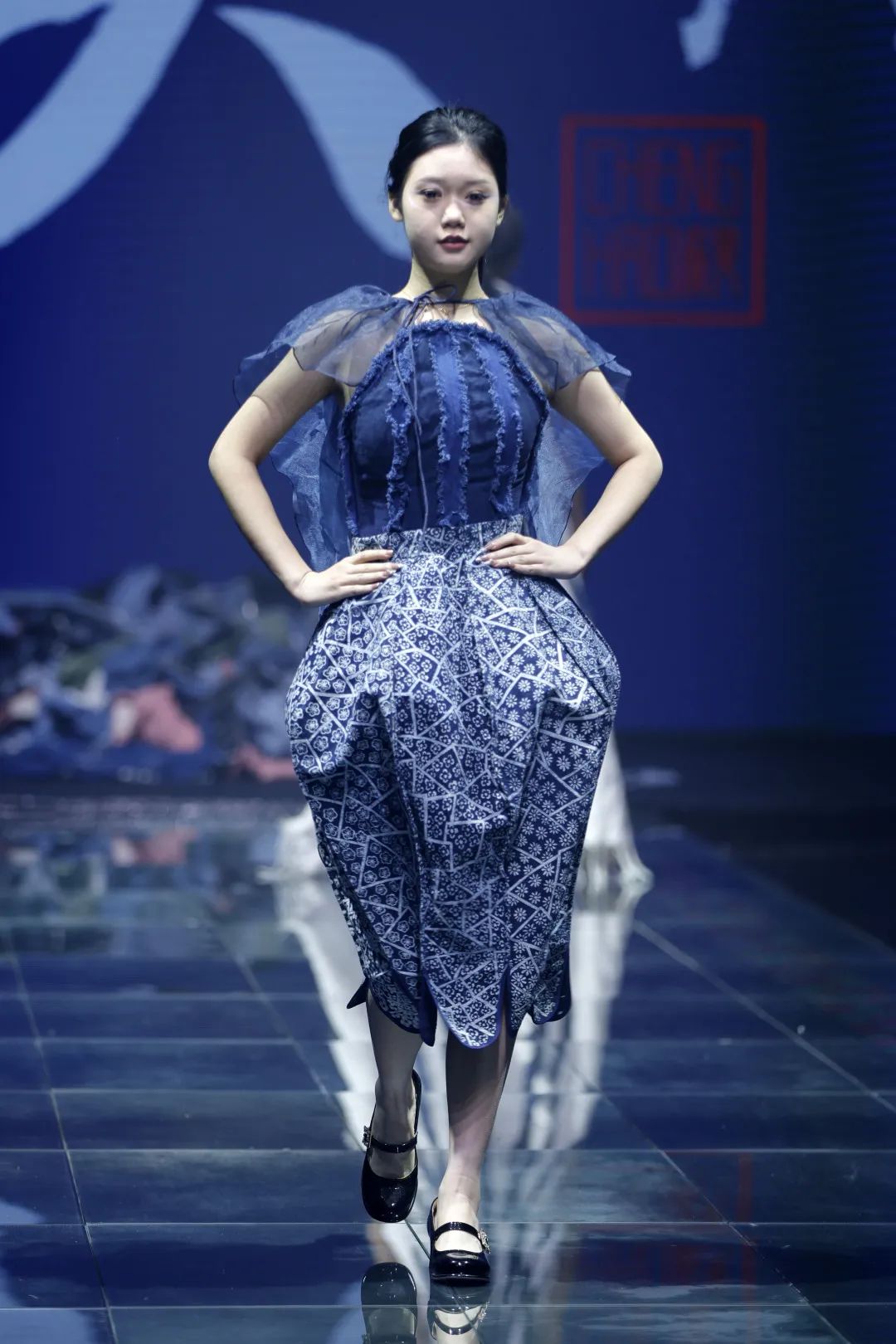 非遗蜡染是中华优秀传统文化的重要组成部分,唤·补蓝之美非遗蜡染系列服装作为压轴大秀可见学校对非遗项目进校园的重视,是学校携手推动非遗与纺织服装产业的高质量融合发展,积极倡导文化自信的重要体现。同时,也是让同学们认知和感受非遗独特的时尚魅力,近距离接触非遗蜡染高定服装带来的视觉冲击,明白蜡染不仅仅是传统过时的也可以是时尚的是高级的。