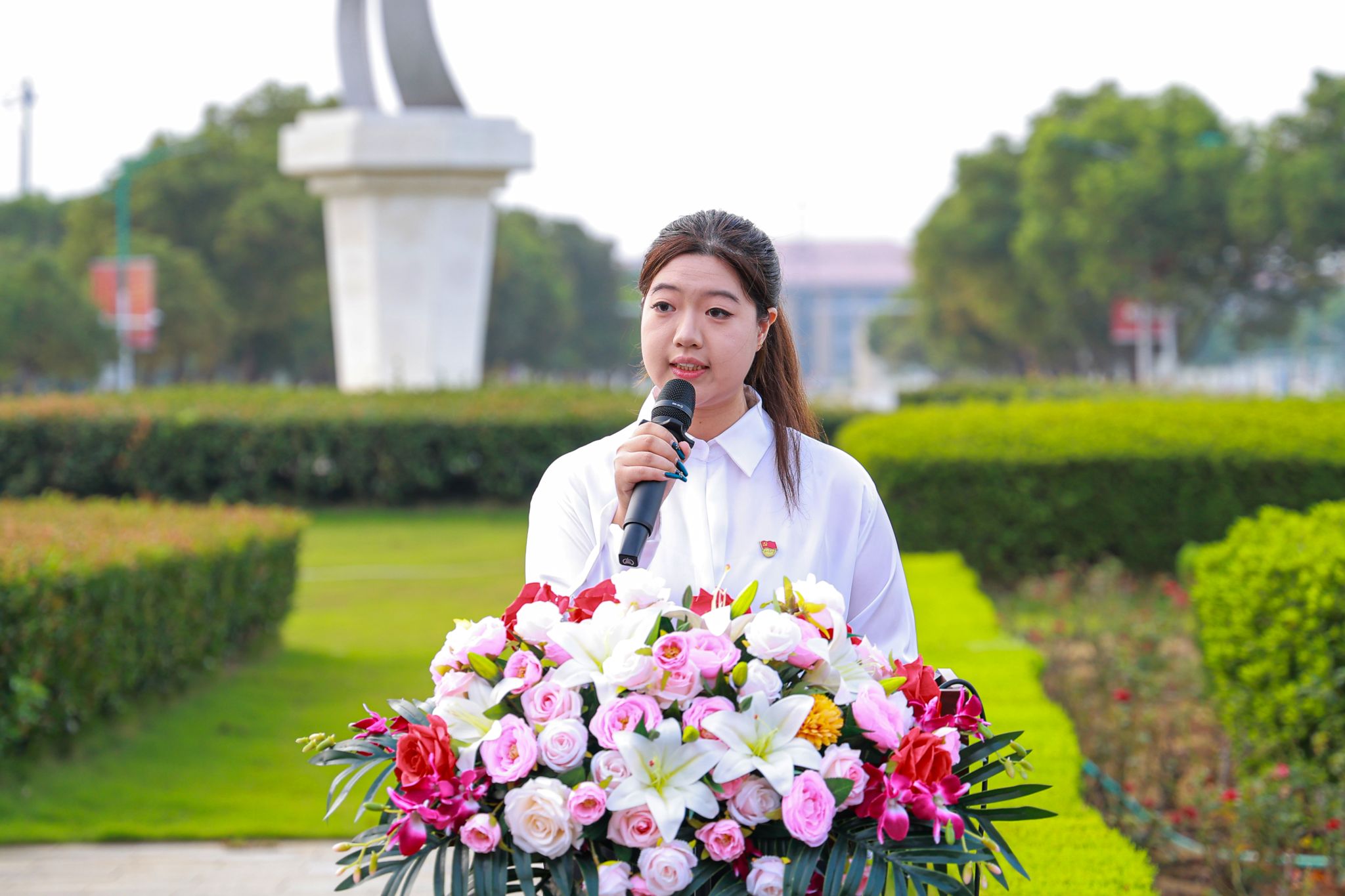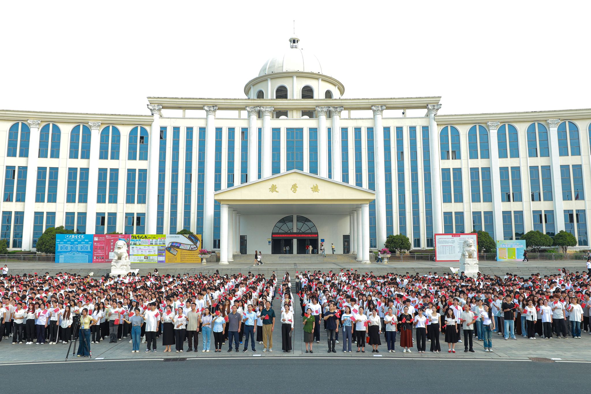 新闻中心讯(文字/万强 图片/钟宏鹏 颜冲)山河焕异彩,盛世启新章。为庆祝中华人民共和国成立76周年,进一步激发全校师生爱国热情,9月30日上午7时,我校在主教学楼前广场举行“礼赞76华诞 青春告白祖国”国旗下的思政课暨2025年秋季入团积极分子培训班开班仪式。校党委书记、督导专员林井萍,党委副书记唐新强,校团委等职能部门负责人,各学院党委书记(副)出席活动,校团委专职团干、各学院分团委(副)书记,第十六期入团积极分子培训班全体学员、校院两级主要学生干部及各学院师生代表共2000余人参加仪式,仪式由校团委指导老师张震主持。