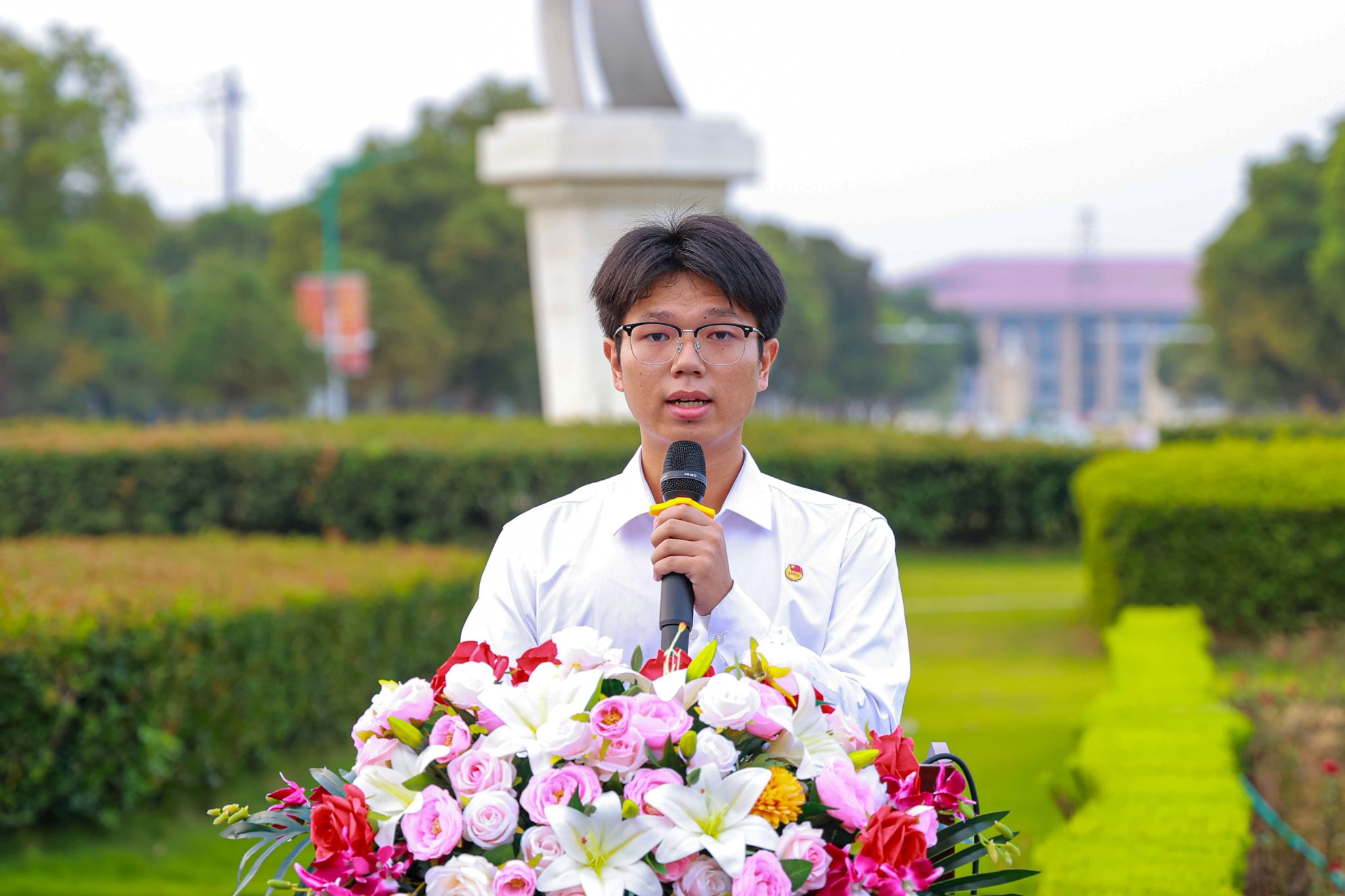 林井萍讲话指出,今年恰逢中国人民抗日战争暨世界反法西斯战争胜利80周年,80多年前革命先辈“以铮铮铁骨战强敌”,用热血换来了民族独立与和平,让当代青年得以安心读书、自由追梦;中华人民共和国成立76年来,祖国实现从“站起来”到“富起来”再到“强起来”的跨越,党的领导、国家统一、民族团结与人民奋斗,是战胜一切艰难险阻的根本力量。立足江西“中国革命的摇篮、人民军队的摇篮、共和国的摇篮”这一红色沃土,传承着井冈山精神、苏区精神、长征精神等诞生于江西红土地上的宝贵精神财富,我校近年来在各领域取得了突出成绩:连续十一年问鼎中国时装设计“新人奖”、连续数年获全省民办高校年检和综合考核第一名,2025年9月陈龙老师获中国时装设计“金顶奖”、吴先尧老师获全国职业技能大赛江西省唯一金牌,我校团委连续获评全省高校共青团工作先进单位、荣获全省五四红旗团委,前后3名同学获评中国大学生自强之星奖学金等,这些成果是江服人将家国情怀融入专业实践的生动体现。林井萍对江服青年提出三点希望:锚定内心热爱,点亮理想航标。以党的创新理论为指引,将个人兴趣与国家未来同频共振;练就硬核实力,解锁未来可能。探索创意、审美与智能制造、AI设计的融合,成为推动新质生产力发展的“青春引擎”;投身真实世界,让奋斗“落地成金”。在乡村振兴、绿色发展、非遗文化转化中践行爱国主义精神,书写无愧于心的青春答卷。