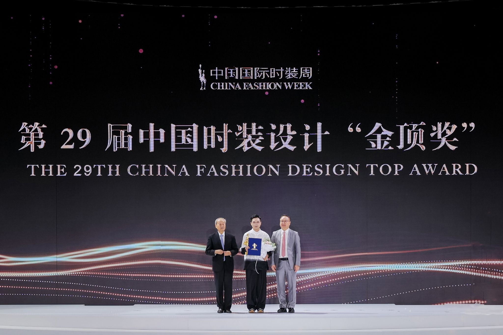 新闻中心讯(文/万强)9月14日,“惠安时尚之夜” 2025中国国际时装周颁奖典礼在北京798·751园区97罐举行。我校在本届中国国际时装周上斩获多项大奖:我校教师陈龙荣获29届中国时装设计“金顶奖”。该奖项作为中国时装设计最高奖,是中国时装设计界的最高荣誉;我校校友隋振冲荣获2025年度最佳女装设计师;我校教师郭晓强、成昊荣获2025年度中国十佳时装技术奖;我校学生张清修荣获中国十佳职业时装模特;江西服装学院荣获2025年度时尚产业推动奖。