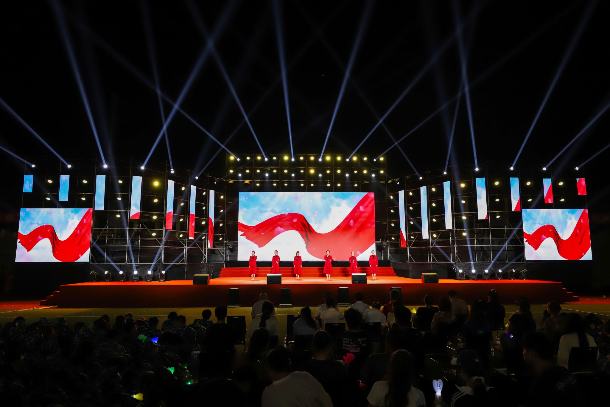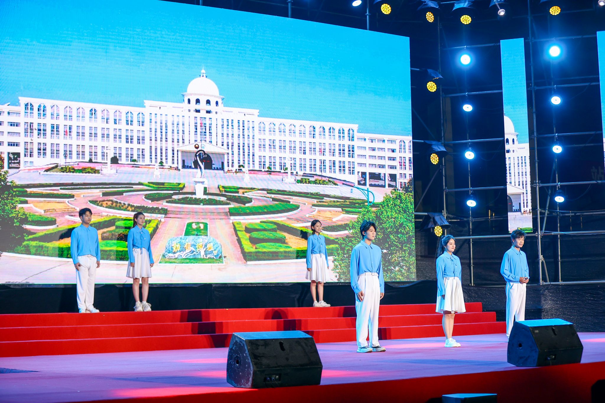 新闻中心讯(文/丁晗艺 图/黄梓翔 颜冲 梅涛 刘毅 钟宏鹏)秋风送爽霓裳舞,青春向党正当时。10月16日晚,由校团委主办,党委宣传部、人民武装部、军事体育教学部协办的“霓裳织梦 红线引航”2025级新生艺术大思政课展演在田径场精彩上演。校长薛家宝,党委副书记、副校长李宝君,党委副书记唐新强,以及来自各学院、各部门的老师与2025级新生欢聚一堂,共同观看了这场融艺术审美与思政教育于一体的迎新盛宴。