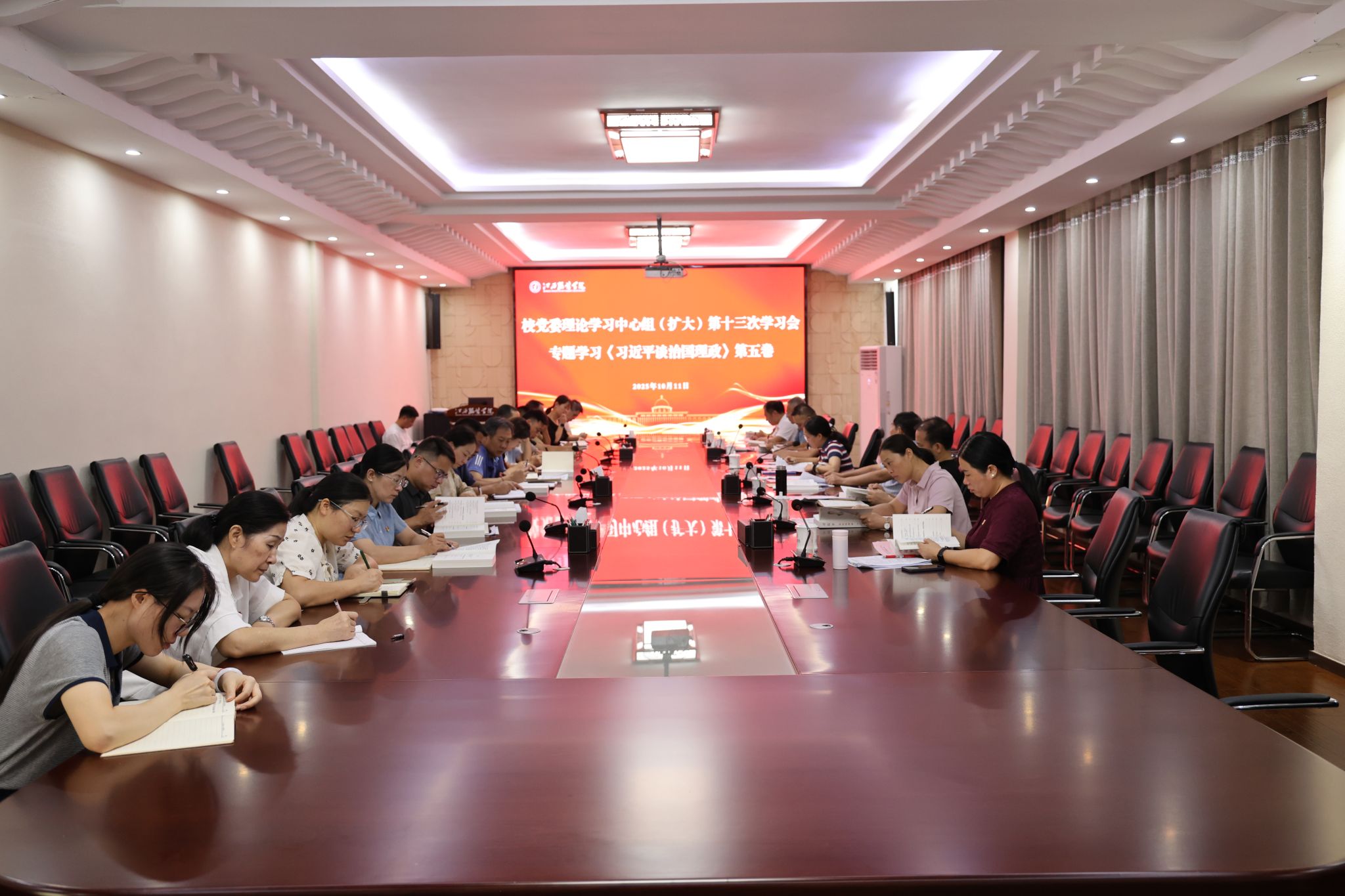 新闻中心讯(文/龙瑞行 图/徐志勇)10月11日上午,我校召开党委理论学习中心组(扩大)第十三次学习会,专题学习《习近平谈治国理政》第五卷,研究贯彻落实意见。校党委书记林井萍主持会议并讲话。会议邀请了江西水利电力大学党委委员、党委宣传部部长洪恩强列席会议并作点评发言。