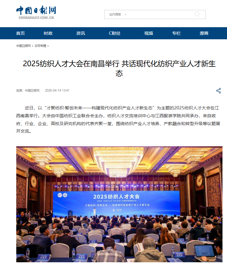 近日,以“才聚纺织·智创未来——构建现代化纺织产业人才新生态”为主题的2025纺织人才大会在江西南昌举行。大会由中国纺织工业联合会主办,纺织人才交流培训中心与江西服装学院共同承办,来自政府、行业、企业、高校及研究机构的代表齐聚一堂,围绕纺织产业人才培养、产教融合和转型升级等议题展开交流。