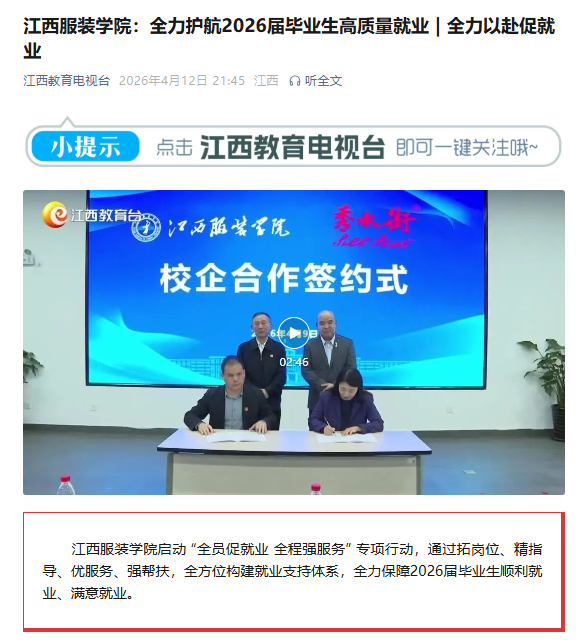 江西教育电视台:江西服装学院:全力护航2026届毕业生高质量就业 | 全力以赴促就业
