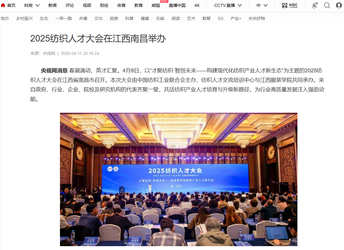 春潮涌动,英才汇聚。4月8日,以“才聚纺织·智创未来——构建现代化纺织产业人才新生态”为主题的2025纺织人才大会在江西省南昌市召开。本次大会由中国纺织工业联合会主办,纺织人才交流培训中心与江西服装学院共同承办。来自政府、行业、企业、院校及研究机构的代表齐聚一堂,共话纺织产业人才培育与升级新路径,为行业高质量发展注入强劲动能。