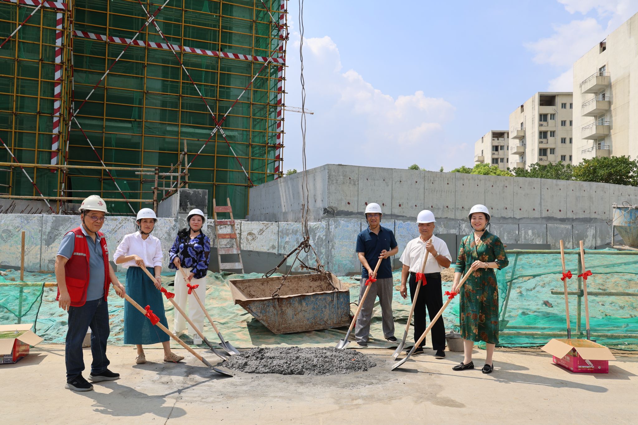 新闻中心讯(图文/樊翔)7月28日上午10时,我校大学生服务大楼建设项目封顶仪式成功举行,这标志着大楼主体结构建设已顺利完成,接下来将进入大楼内外装修和配套设施安装阶段。学校举办者涂智勇先生、理事长涂燕萍女士、校理事会办公室主任康娜女士、基建处项目负责人及施工和监理单位项目负责人等代表共同见证了这一重要时刻。