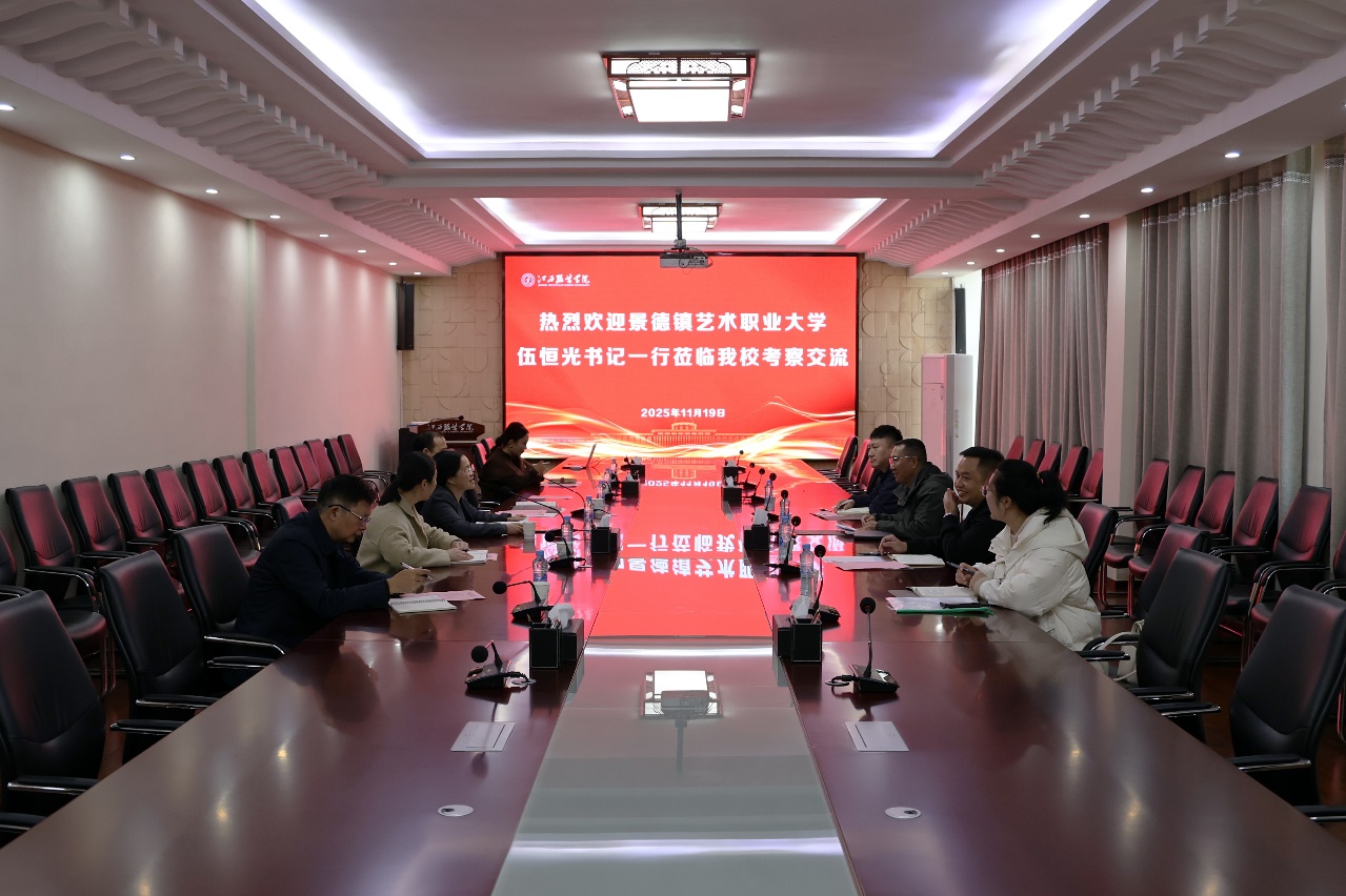 新闻中心讯(供稿/党委组织部)11月19日上午,景德镇艺术职业大学党委书记、督导专员伍恒光率队莅临我校考察交流。我校党委书记、督导专员林井萍热情接待,党委副书记唐新强主持座谈会,两校相关职能部门负责人共同参与座谈。
