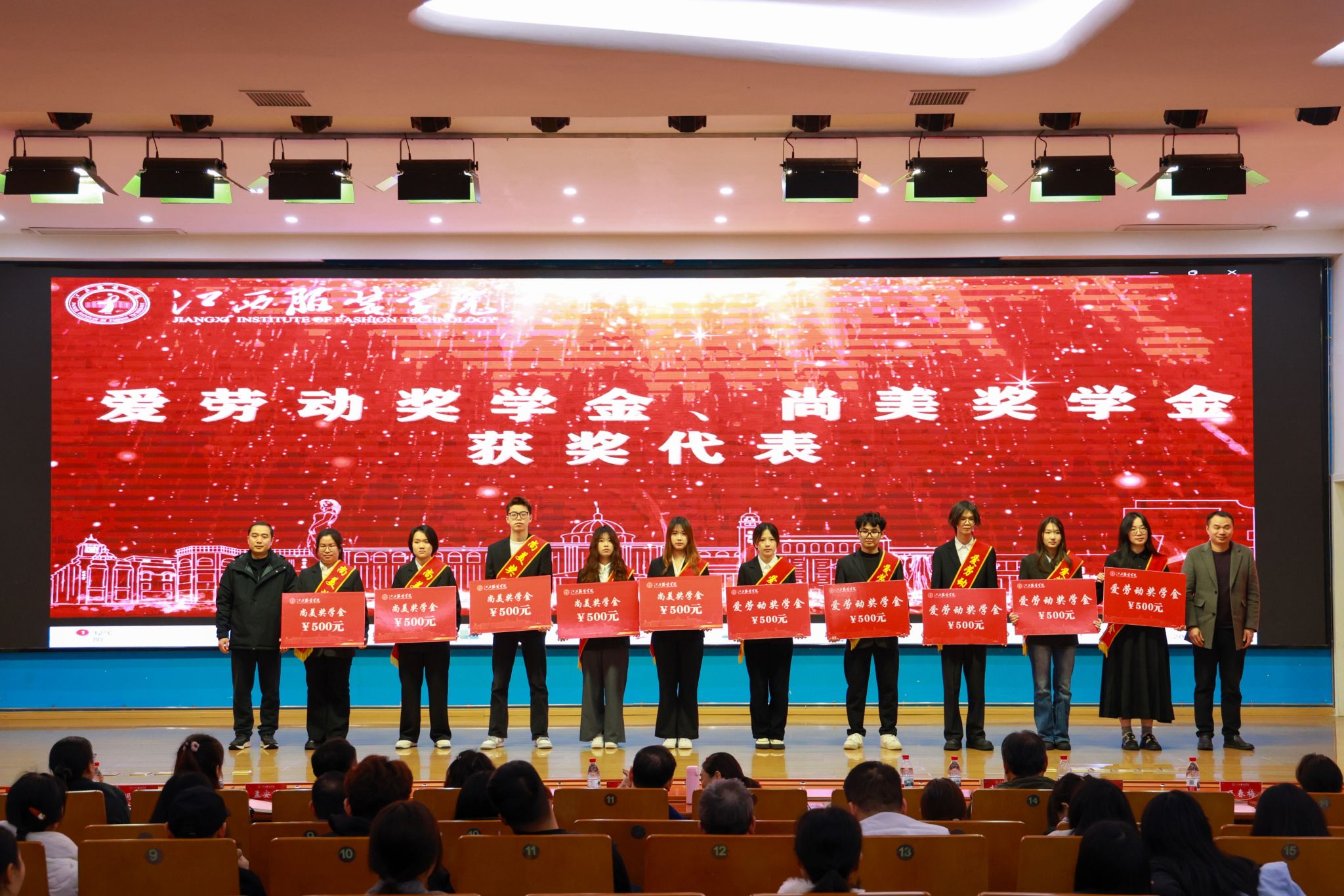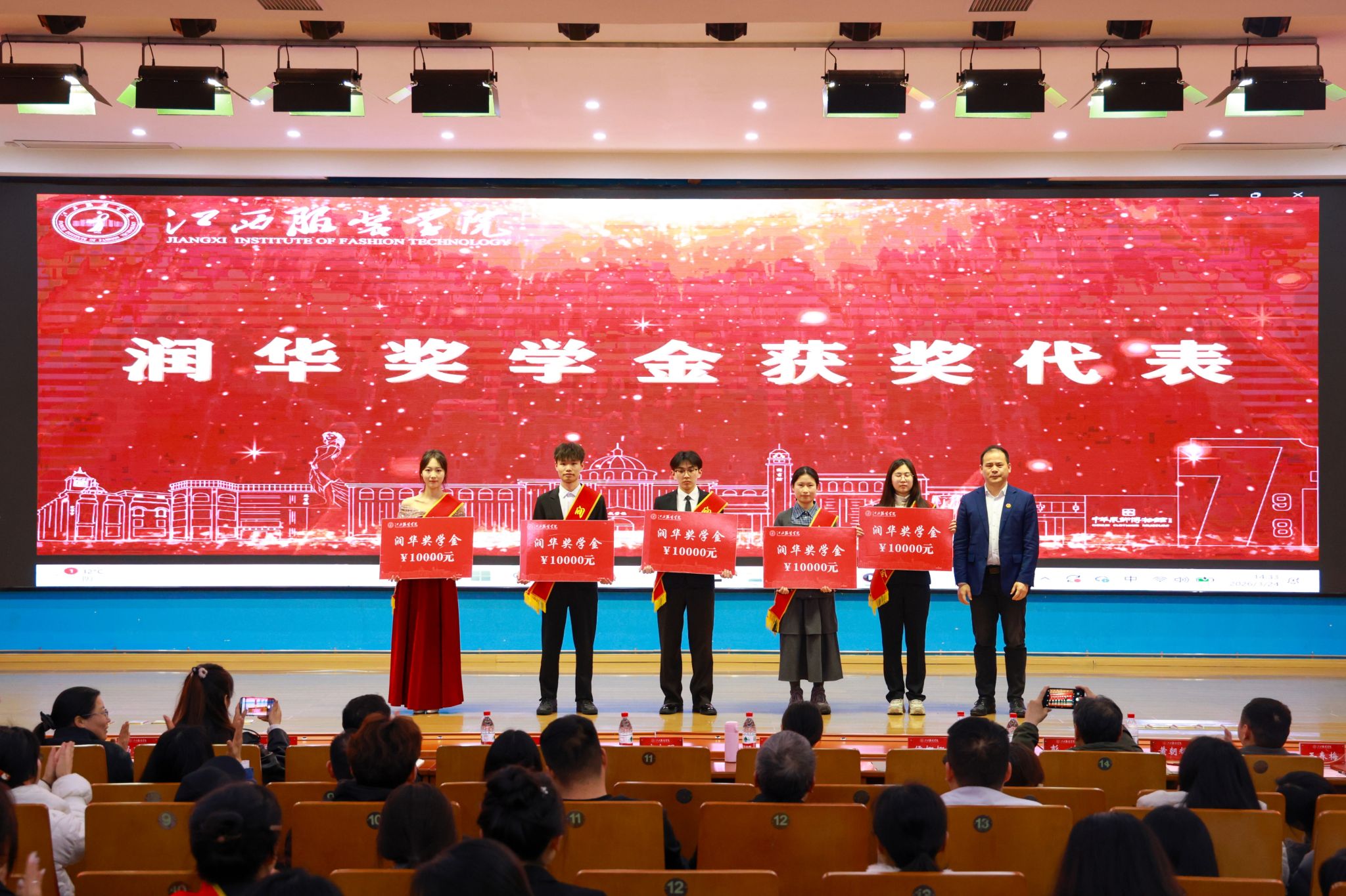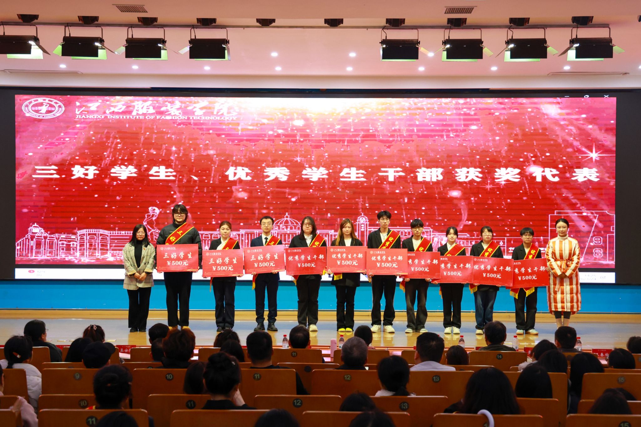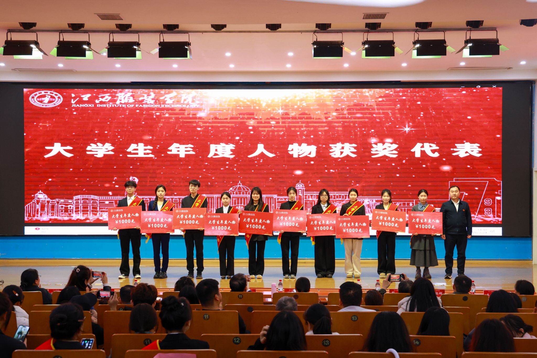 典礼在庄重热烈的氛围中拉开帷幕,现场首先播放了《江西服装学院2025年度优秀学子宣介片》,生动展现了我校学子锐意进取、追求卓越的精神风貌。校党委组织部部长陈翠娥宣读表彰决定,3775名品学兼优的学生受到表彰。在热烈的掌声中,校党委副书记唐新强、校长助理尹娜娜等领导为获奖学生颁发荣誉证书,勉励他们珍惜荣誉、再接再厉,在追求卓越的道路上不断书写新的华章。