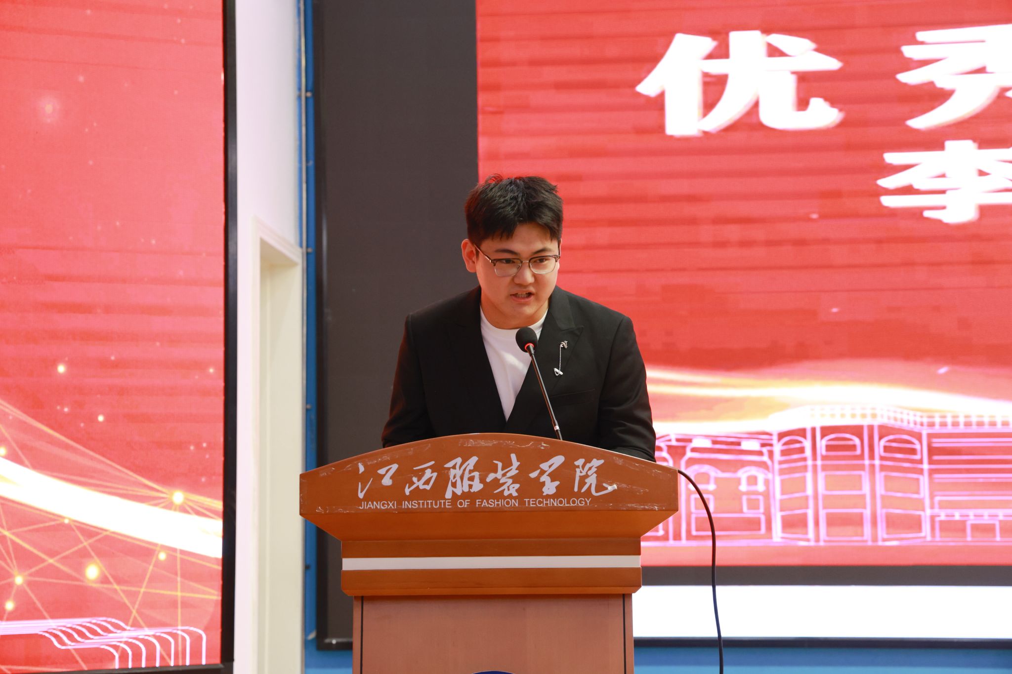 国家奖学金获得者代表杨园园、润华奖学金获得者代表徐佳丽、优秀班长代表李振东先后发言。他们结合自身成长经历,从不同角度分享了匠心筑梦、学业争先、服务师生的心路历程,真挚的讲述引发了在场师生的强烈共鸣,充分展现了江服学子砥砺奋进的青春风采。
