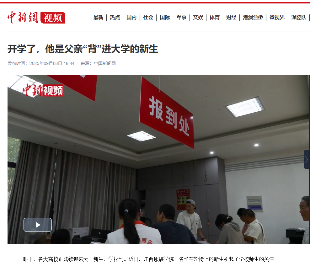 中国新闻网:开学了,他是父亲“背”进大学的新生