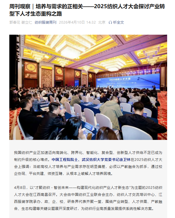 纺织服装周刊对此进行了报道,以下为新闻链接: