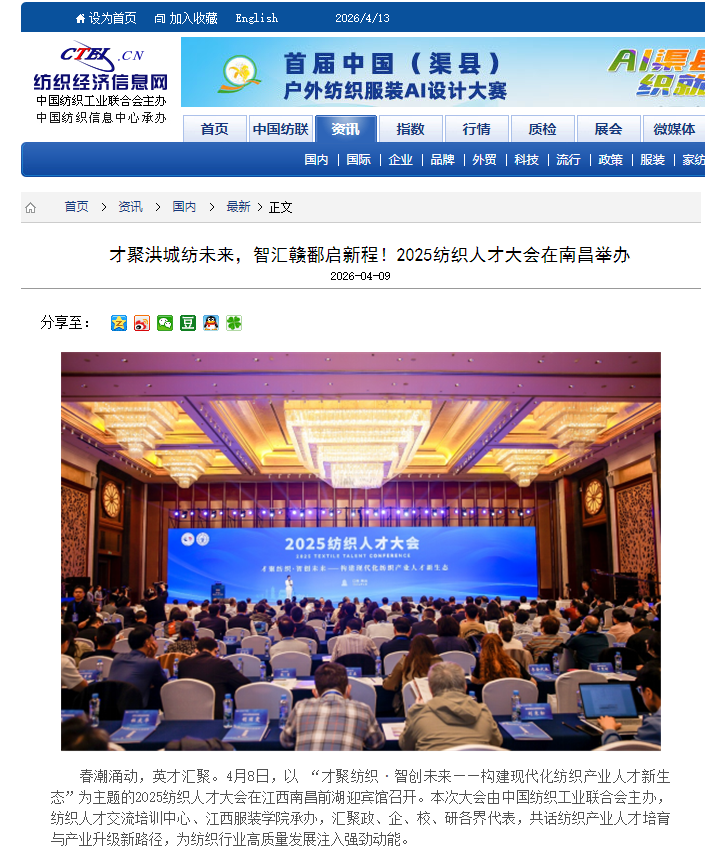 纺织经济信息网对此进行了报道,以下为新闻链接: