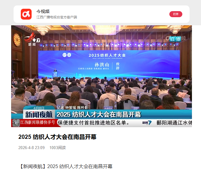 春潮涌动,英才汇聚。4月8日,以“才聚纺织·智创未来——构建现代化纺织产业人才新生态”为主题的2025纺织人才大会在江西南昌前湖迎宾馆隆重召开。本次大会由中国纺织工业联合会主办,纺织人才交流培训中心与江西服装学院共同承办。来自政府、行业、企业、院校及研究机构的代表齐聚一堂,共话纺织产业人才培育与升级新路径,为行业高质量发展注入强劲动能。
